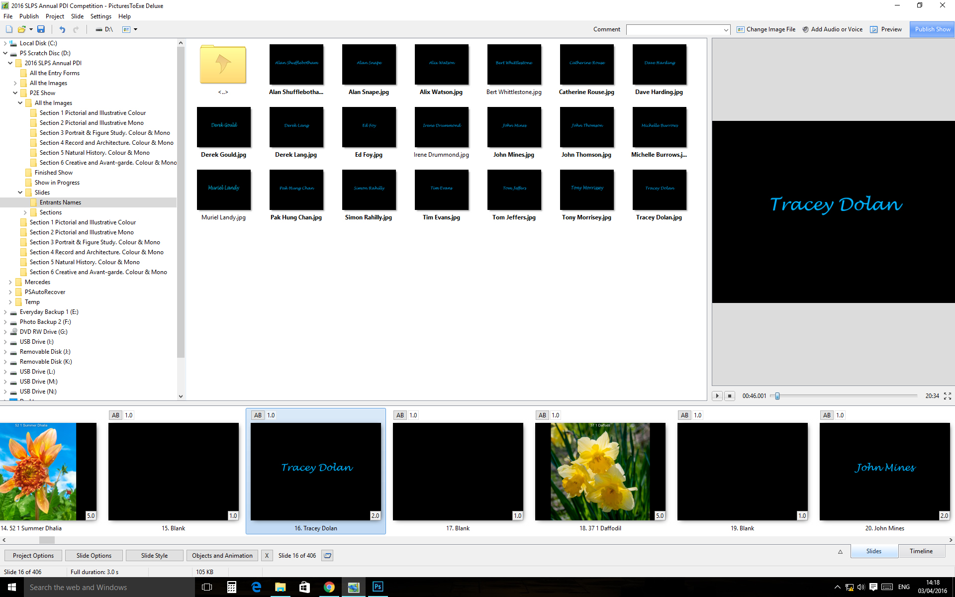 I have folders that I use every time I make a show. they have the image authors names on. Is it possible to have that folder of slides to have preset timings and fades?