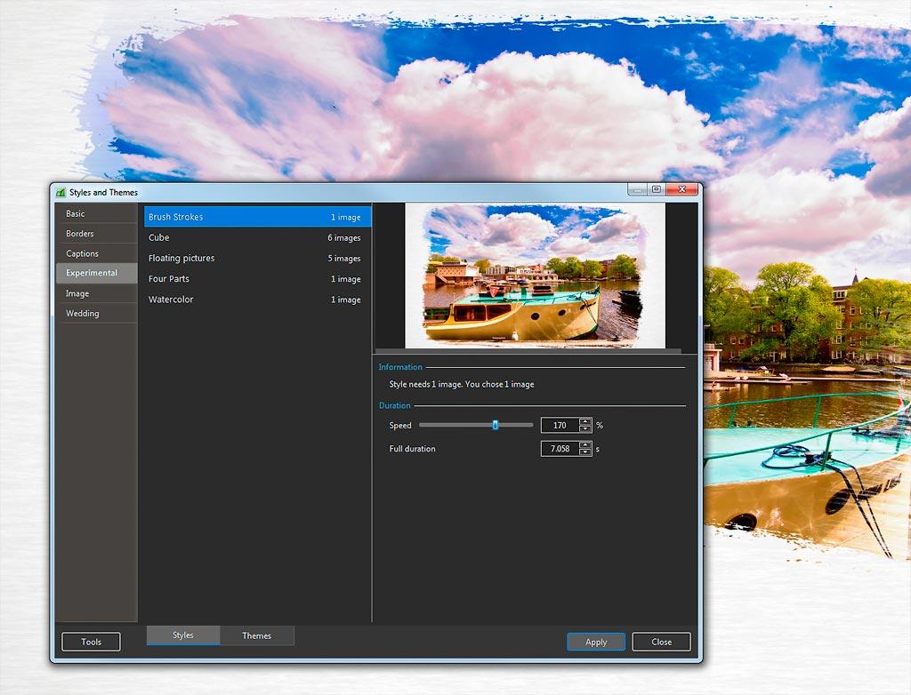So I'm doing the trial version of Studio Pro which allows you to create a new slide style. What I'm looking to do, is make a slight modification to an existing slide style. Long story short, I don't see me creating styles from scratch, so buying the pro version wouldn't be worth it. But if I can modify styles, then it's a go on the pro. There are a couple styles I like, but I would like them even more if I could modify them. I'm making the assumption it would be easier to modify a style than to completely create it. ( Yes, I do know the rule about making assumptions ) The modification would be something like covering more of the screen with the original photo in this style. ( Photo below )