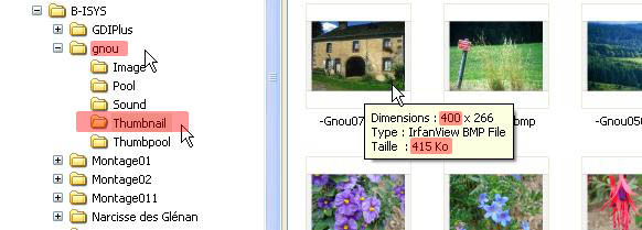 You are right Umberto. I encountered the same problem in the ongoing development of a new software ISYS. For example, with heavy images in TIFF format. I solved it as you say. The first time an original image is read, I create the thumbnail stored in a subfolder (Thumbnail) of the project (here Gnou). At the end of a session if an image has been removed it is also deleted from the subfolder Thumbnail. The value of the width of the thumbnail 400 is defined as an option. In this example the weight of the image is only 415 kilobytes although written in BMP format for the best result when the the image is stretched. PS: This software is an aid to achieving a slide show. It brings together and save before the construction itself all the elements, images, sounds, videos, texts, dialogues classified in their respective scenes. The english language version is not yet finalized. [edit]kilobytes and not bytes -