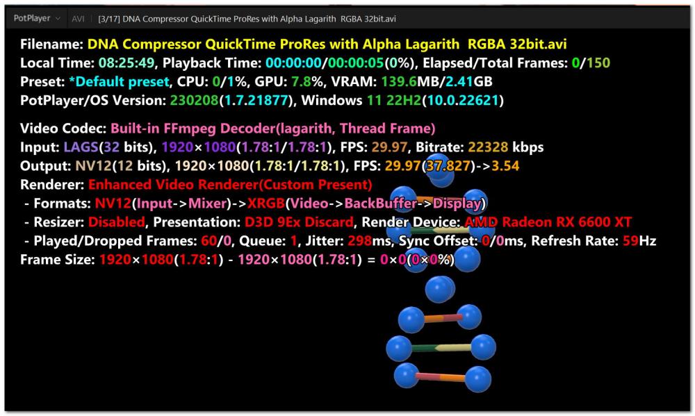 Hi Igor, Here is 5 second rotating DNA with VP9 codec with alpha channel. I verified it works in another video editor. https://we.tl/t-sZplazeBYk Thanks, Tom