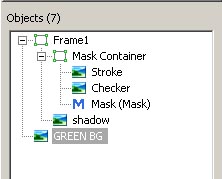 davegee Posted October 5, 2010 Report Posted October 5, 2010 OK,The JPEG shows the O&A Objects pane for the way I did it.The Mask PNG is made in PS (not in PTE).The Stroke PNG is made INSIDE the inverted mask (again in PS).The shadow was made from from the Mask PNG and added to the Frame and sent to the back.Animating the Frame moves everything attached to it in the same direction.This way is probably not very far removed from the way that you originally did it except that a Mask has been used?Now stand by for various different (better) ways of doing it.DG Quote
