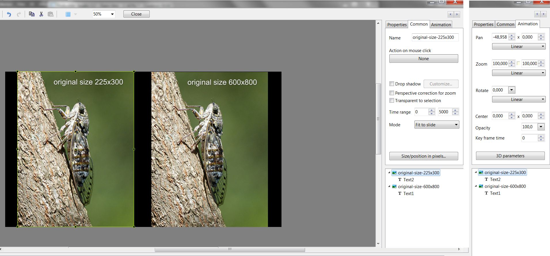 Barry Beckham Posted January 31, 2013 Report Posted January 31, 2013 If I understand the point correctly, I made it years ago, but not in relation to animation. Not sure it even existed when I raised this. I was saying that it seemed wrong to me that every picture brought into PTE that was smaller than the main screen resolution set, will be expanded up to either:Reach the edges or the top/bottom of the screen depending on the format of the smaller image. The only option to put this right is to visit evey single image (that is smaller then the set show resolution) in the Objects and Animation screen, select the Common tab > Size position in Pixels > Original Mode and then reset the value to 100%. I said back then that there should be a glabal setting for this. It would make a nice preferences setting.It is annoying when you create a small inset image and PTE expands it up to try and fit it to the size of the screen. Quote